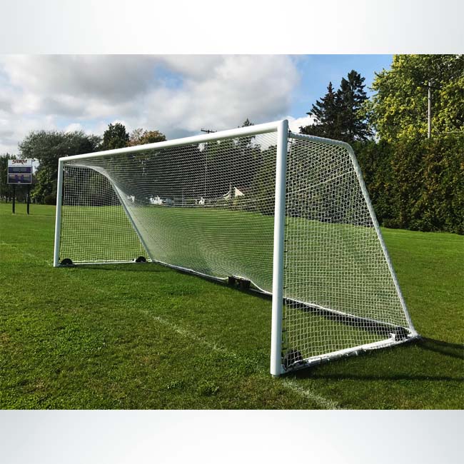 Red para portería de futbol embreada medida oficial alto 2.44 mts, ancho 7.50 mts, caida 3.50 mts, fondo 2.72 mts tratamiento para intemperie hilo grueso en color blanco cable de polipropileno